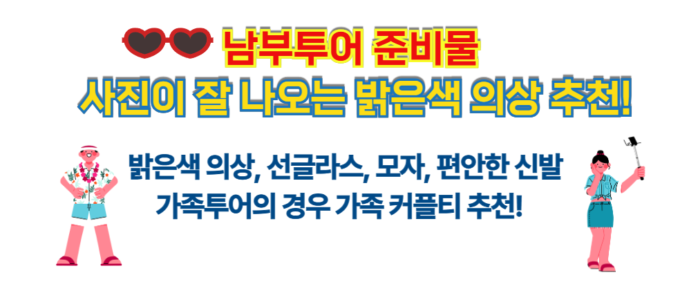 - 픽업시간: 호텔에서 오전 09:00 (*남부투어의 경우 3시간 30분 이상 소요로 픽업 시간 변경 불가)