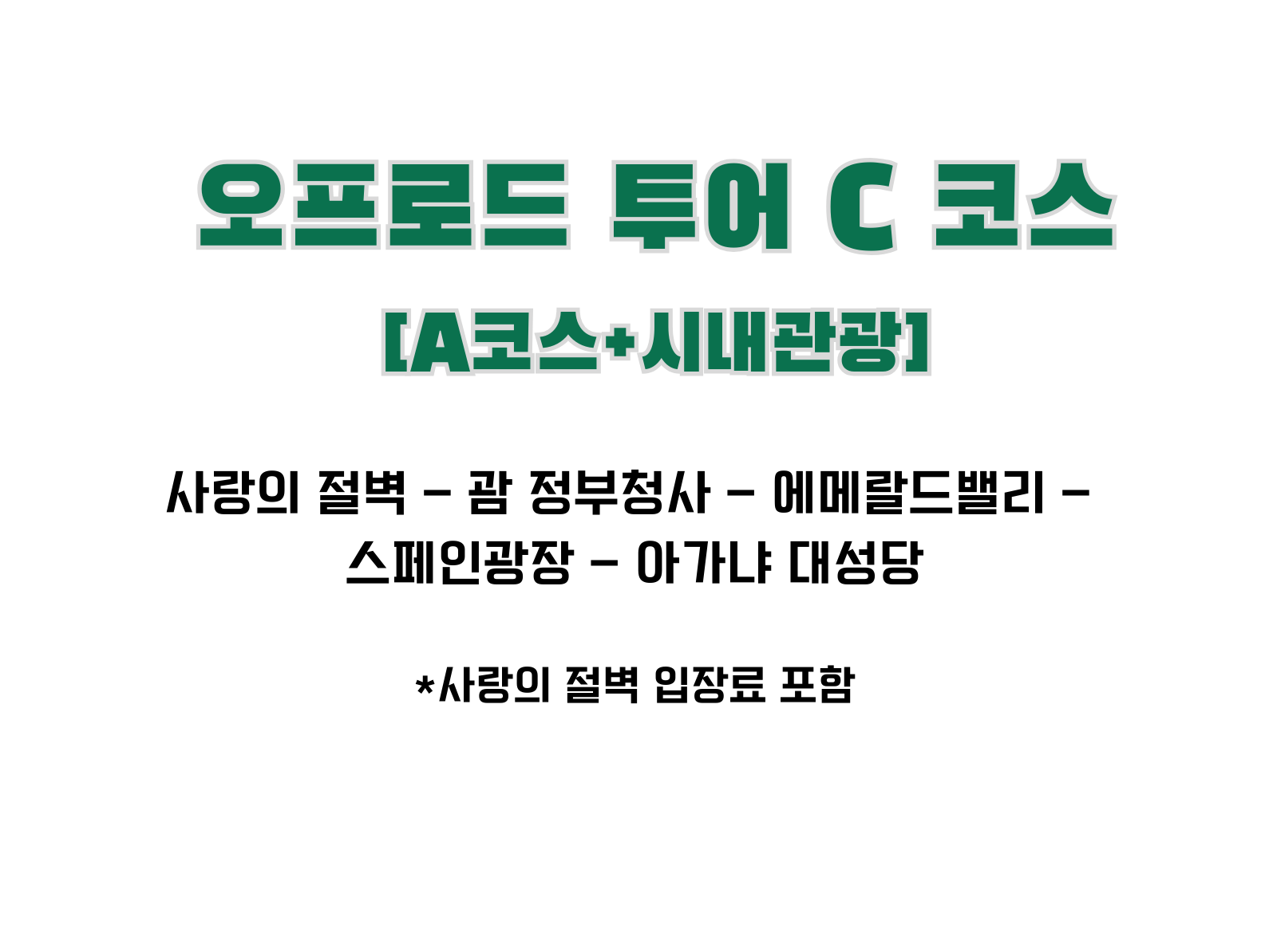 - 원하시는 시간에 출발 가능 (투어시간을 감안하여 오후 1시전까지 출발 시간 확정)