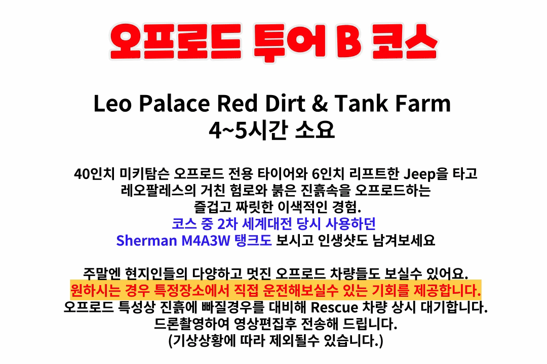 - 임산부 또는 디스크 병력이 있으실 경우 해당 투어는 예약이 불가합니다. (건강과 안정상의 이유)
