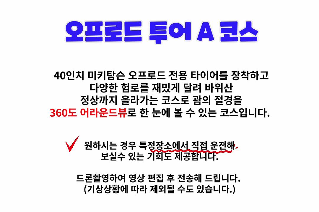 ✔ 기상 상황에 따라 투어 취소 시 전액 환불 처리해 드립니다.
